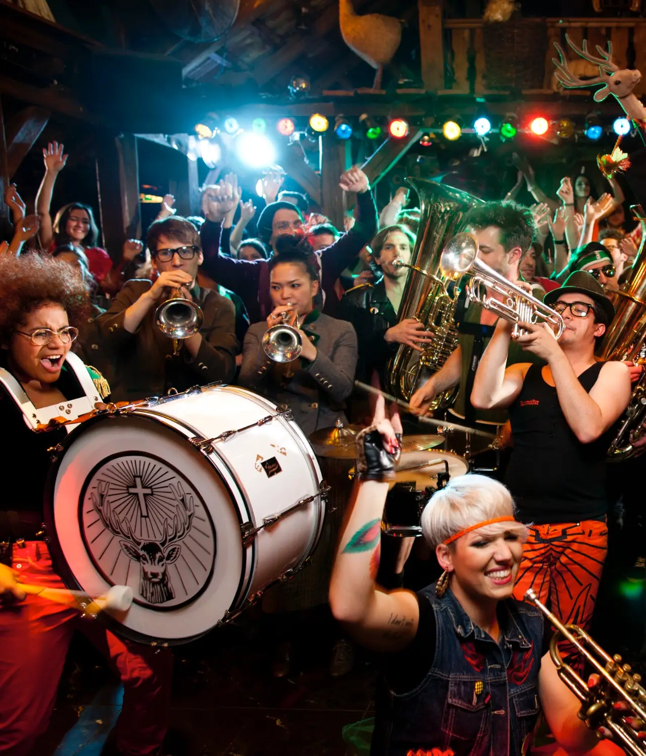Tiefstapeln gilt nicht. Also sagen wir es ist: Mit dem „Gasthof Zum Röhrenden Hirschen“, dem „Platzhirsch“ und dem „Jägermeister Giganten“ haben wir Maßstäbe im Festival-Business gesetzt, an dem sich bis heute alle andere Marken messen lassen müssen. Ebenso ikonisch: die „Jägermeister Blaskapelle“, die als flexibles Musik-Einsatzkommando nicht nur auf Markenevents spielte, ein eigenes Album herausbrachte und z.B. mit Scooter auf Tour ging, sondern auch von anderen Kunden gebucht wurde. Yup, ein Markentool, das von anderen Marken gebucht wird, für Geld. Darunter z.B. vom FC Bayern für Meister- und Championsleague-Feiern. Schon ein bisschen crazy. Außerdem konzipierten wir zahllose weitere Eventformate und Serien - immer mit dem Anspruch, die Brand Values perfekt zu verkörpern und vor Ort alles wegzuballern. Hat geklappt.