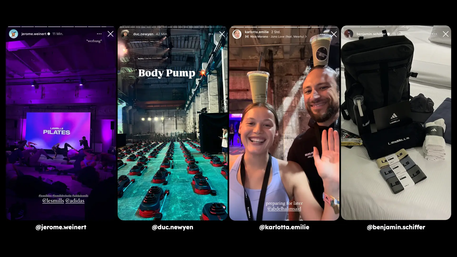 LES MILLS BERLIN LIVE - a comprehensive influencer and media activation event in the Kraftwerk Berlin. Selected creators were positioned as brand ambassadors, producing authentic content during and around the event. This ensured credibility and reach within relevant target groups. The campaign was further amplified through targeted PR, giveaways, and out-of-home (OOH) placements.